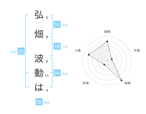 弘畑 波動はさんの総格は38画の4点!