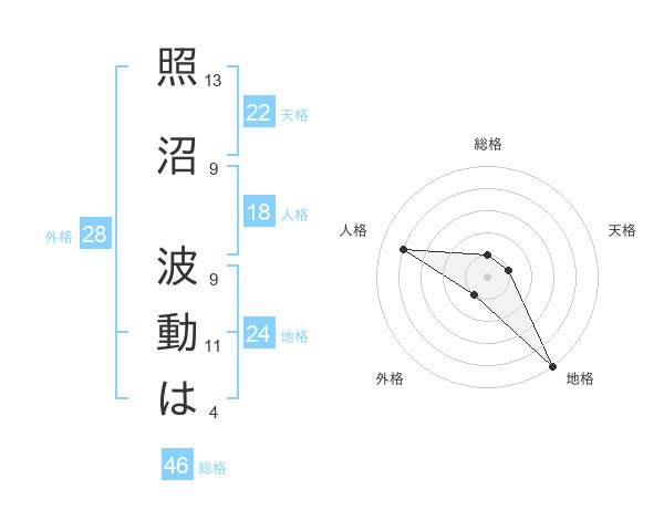 照沼 波動はさんを姓名の画数から五運を鑑定