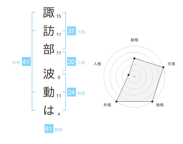 諏訪部 波動はさんを姓名の画数から五運を鑑定