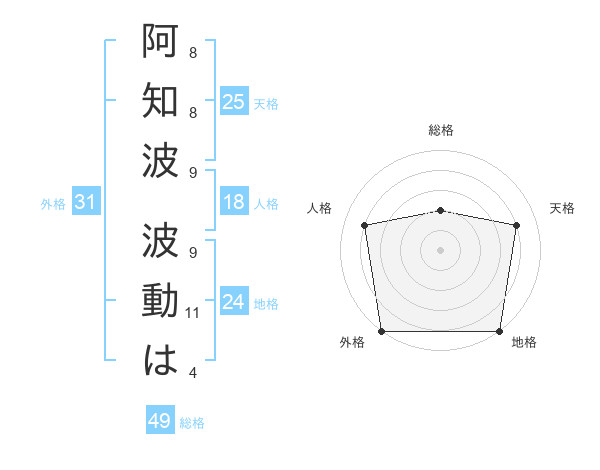 阿知波 波動はさんを姓名の画数から五運を鑑定
