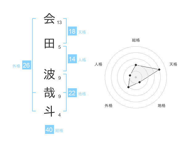 会田 波哉斗さんの天格は18画の4点!