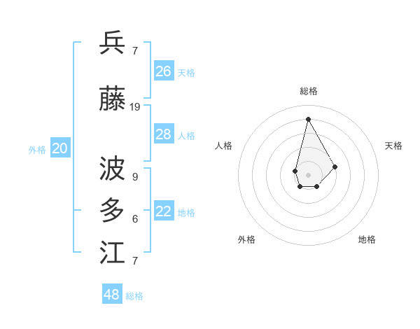 兵藤 波多江さんを姓名の画数から五運を鑑定