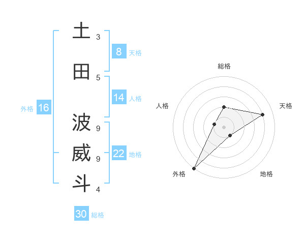 土田 波威斗さんを姓名の画数から五運を鑑定