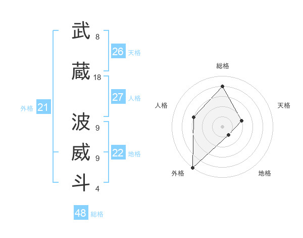 武蔵 波威斗さんの外格は21画の5点!