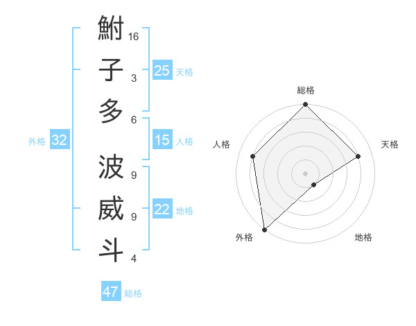 鮒子多 波威斗さんの総格は47画の5点!