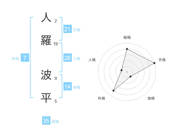 人羅 波平さんの天格は21画の5点!