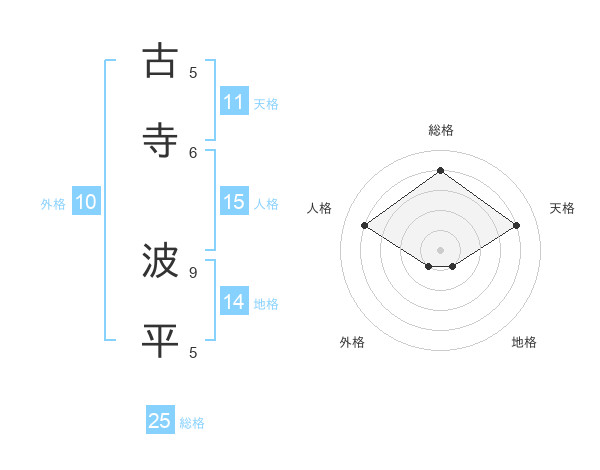 本サイトの鑑定結果の正当性は保証しません。鑑定結果は参考程度にお読みください。実際の名づけにご利用される場合は、姓名判断についてご自身でよくお調べください。