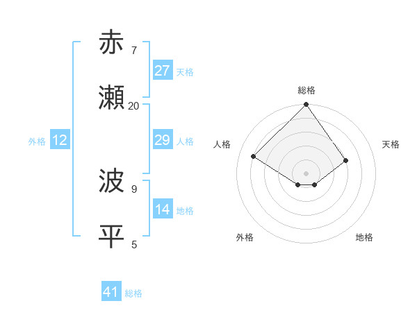 赤瀬 波平さんを姓名の画数から五運を鑑定