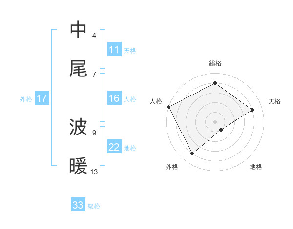中尾 波暖さんを姓名の画数から五運を鑑定