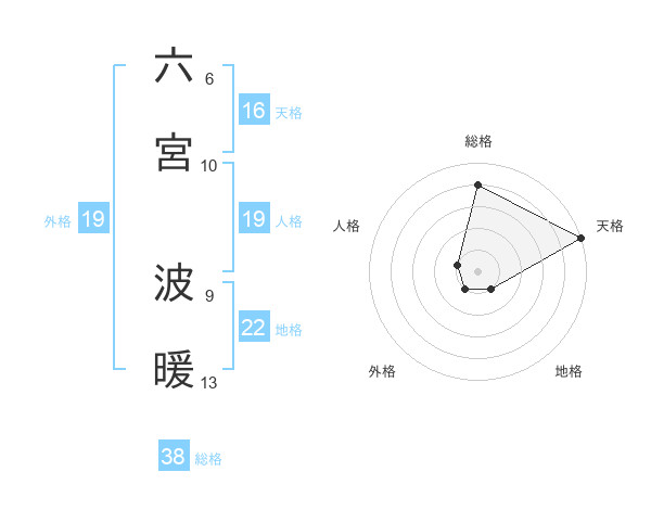 六宮 波暖さんを姓名の画数から五運を鑑定