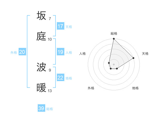 坂庭 波暖さんを姓名の画数から五運を鑑定