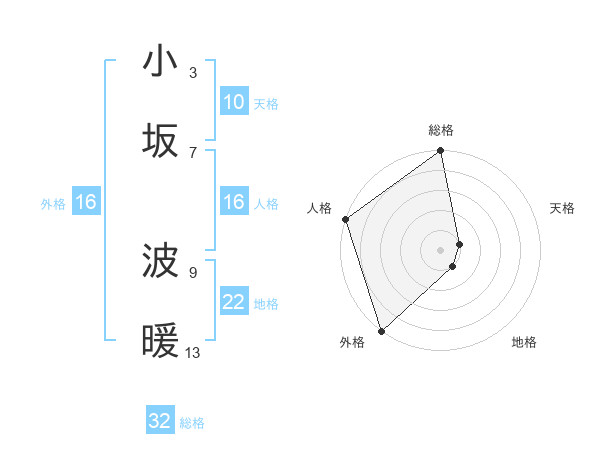 小坂 波暖さんの総格は32画の5点!