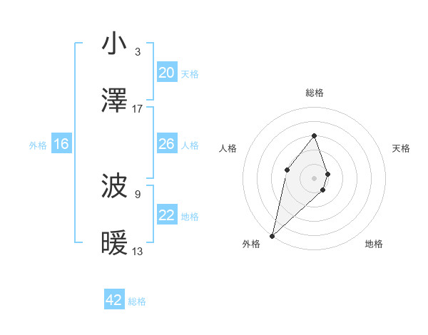 小澤 波暖さんの外格は16画の5点!