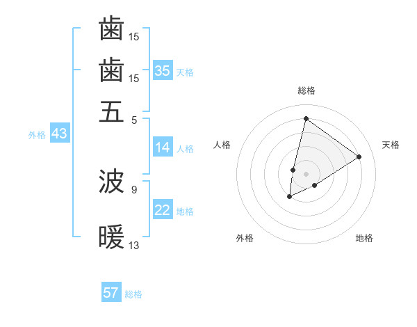 歯歯五 波暖さんを姓名の画数から五運を鑑定