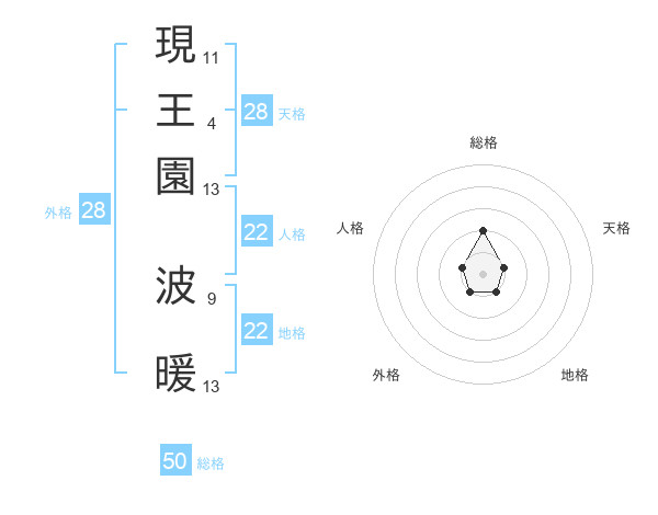 現王園 波暖さんを姓名の画数から五運を鑑定