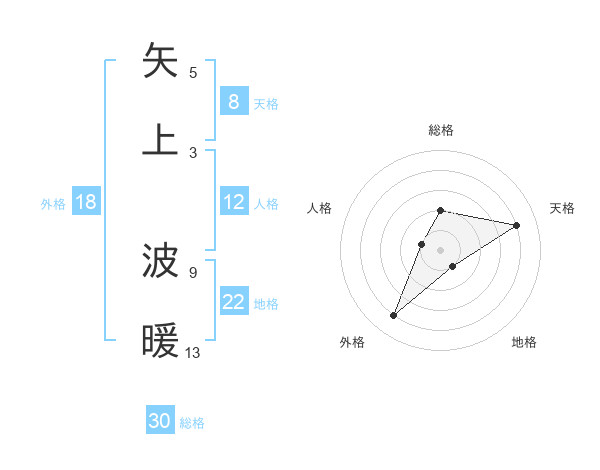 矢上 波暖さんを姓名の画数から五運を鑑定