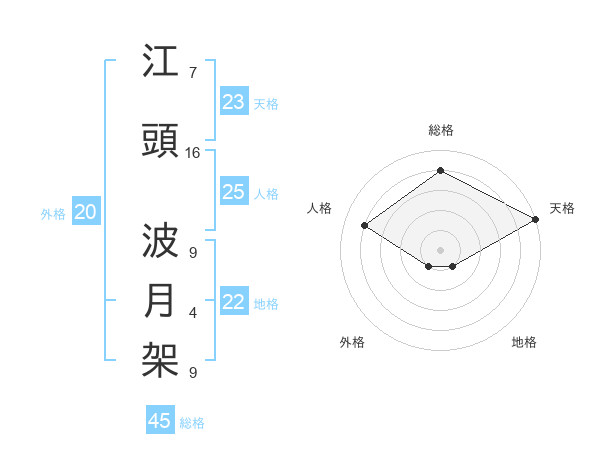 江頭 波月架さんを姓名の画数から五運を鑑定