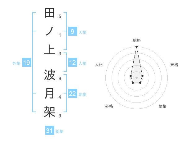 田ノ上 波月架さんを姓名の画数から五運を鑑定