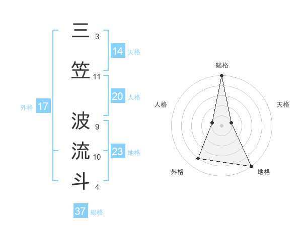 三笠 波流斗さんの総格は37画の5点!