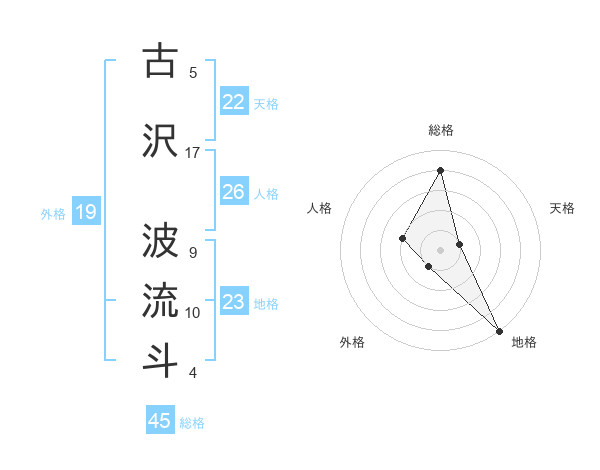 古沢 波流斗さんを姓名の画数から五運を鑑定