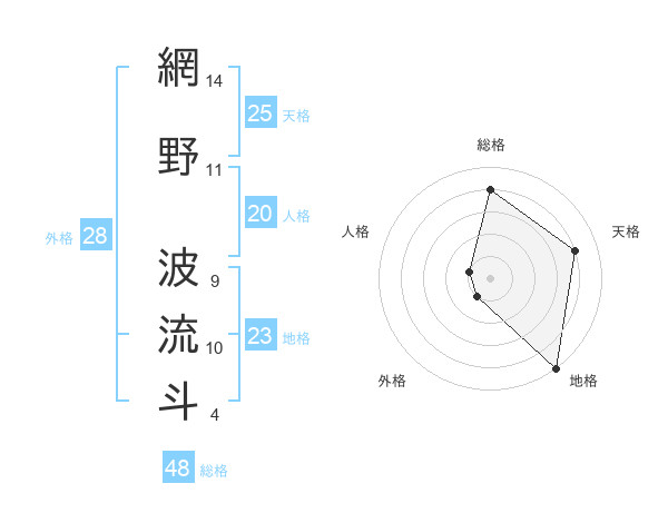 網野 波流斗さんを姓名の画数から五運を鑑定