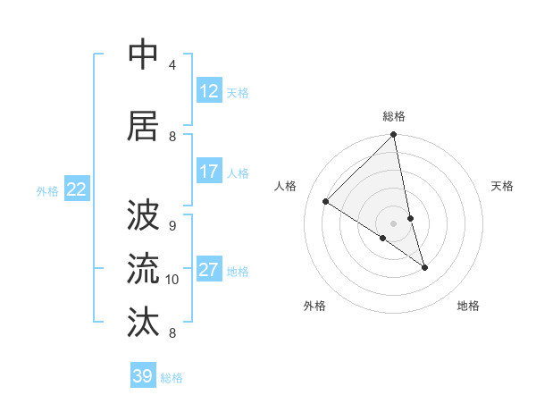 中居 波流汰さんを姓名の画数から五運を鑑定