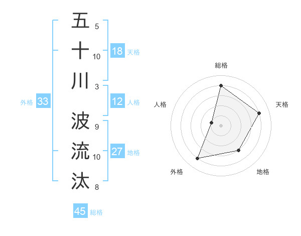 五十川 波流汰さんの総格は45画の4点!