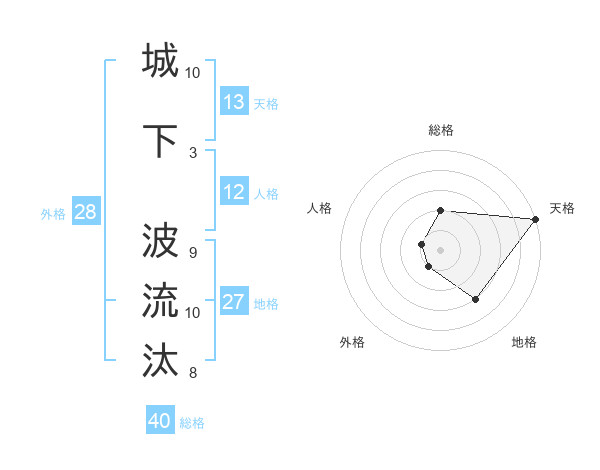 城下 波流汰さんを姓名の画数から五運を鑑定