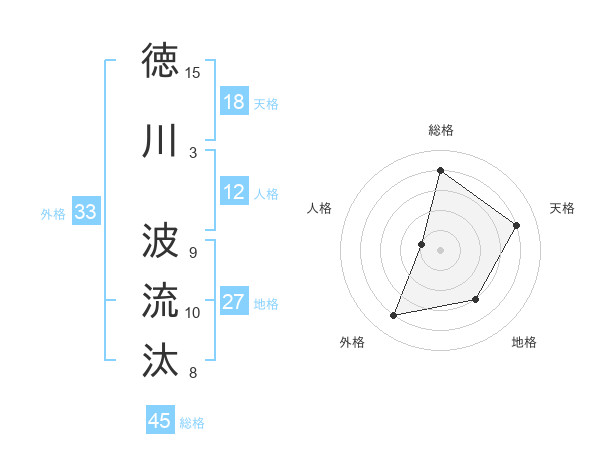 徳川 波流汰さんの天格は18画の4点!