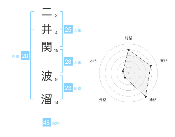 二井関 波溜さんを姓名の画数から五運を鑑定