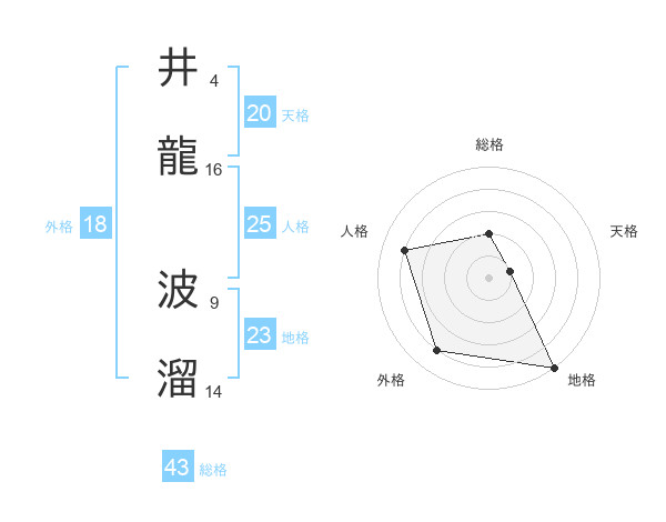 井龍 波溜さんの総格は43画の2点!
