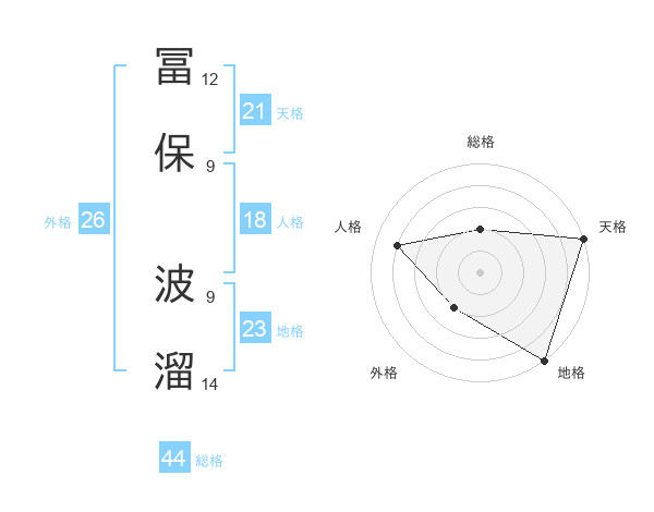 冨保 波溜さんの総格は44画の2点!