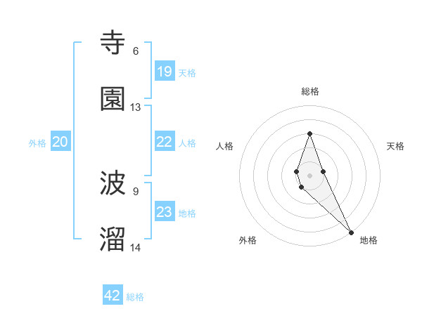 寺園 波溜さんを姓名の画数から五運を鑑定