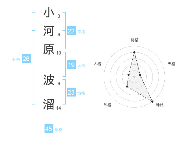 小河原 波溜さんの総格は45画の4点!
