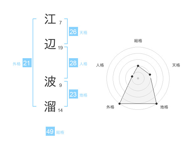 江辺 波溜さんを姓名の画数から五運を鑑定