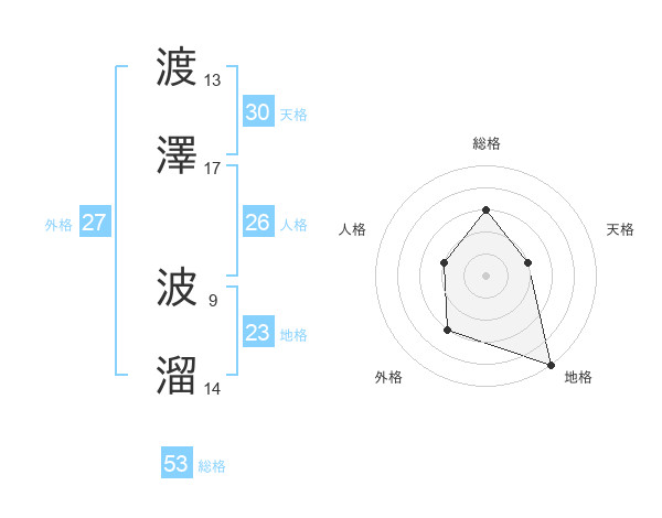 渡澤 波溜さんを姓名の画数から五運を鑑定