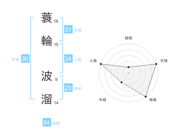 蓑輪 波溜さんを姓名の画数から五運を鑑定