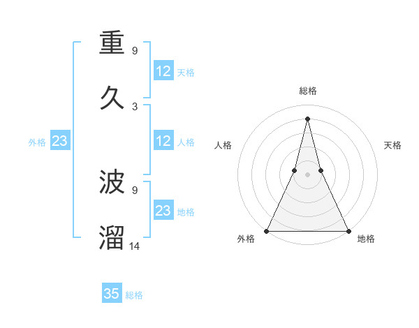 重久 波溜さんの総格は35画の4点!