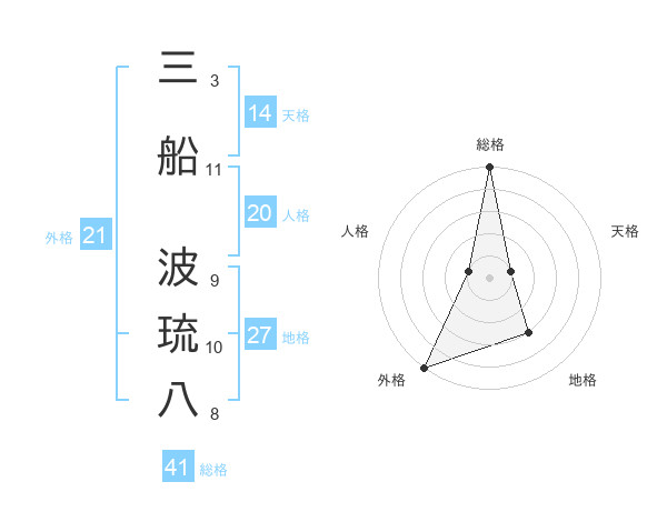 三船 波琉八さんの総格は41画の5点!