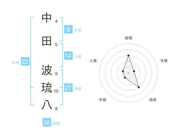 中田 波琉八さんの外格は22画の1点!