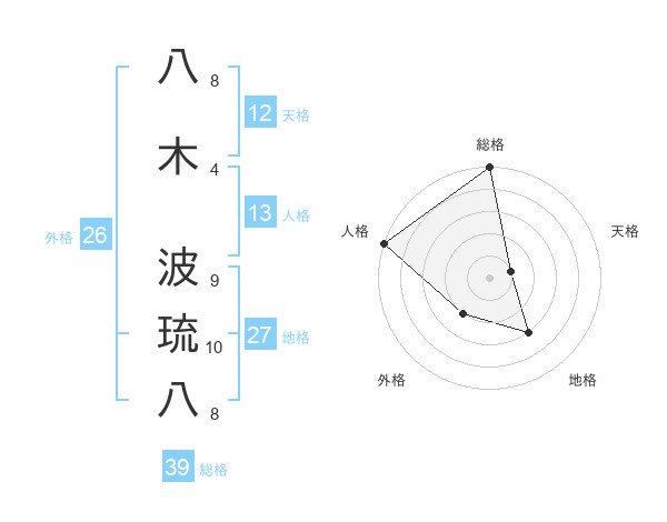 八木 波琉八さんの総格は39画の5点!