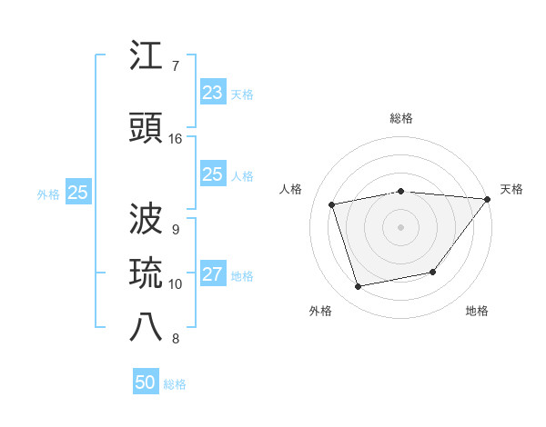 江頭 波琉八さんの総格は50画の2点!