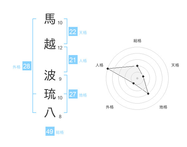 馬越 波琉八さんの総格は49画の2点!