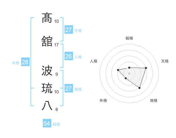 髙舘 波琉八さんの総格は54画の1点!