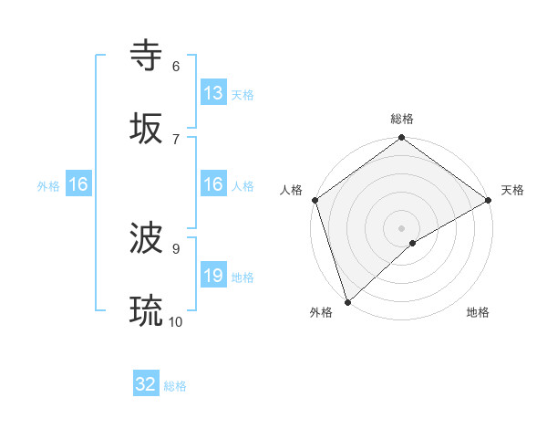 寺坂 波琉さんの人格は16画の5点!
