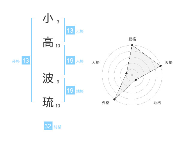 小高 波琉さんの外格は13画の5点!