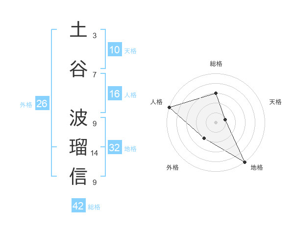 土谷 波瑠信さんを姓名の画数から五運を鑑定