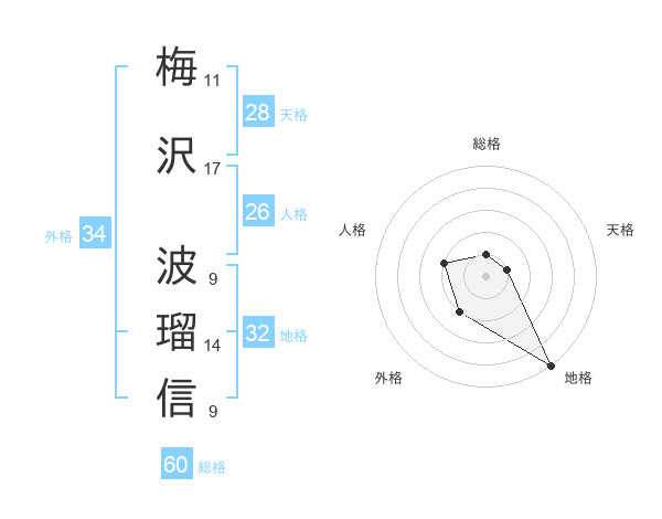 梅沢 波瑠信さんを姓名の画数から五運を鑑定