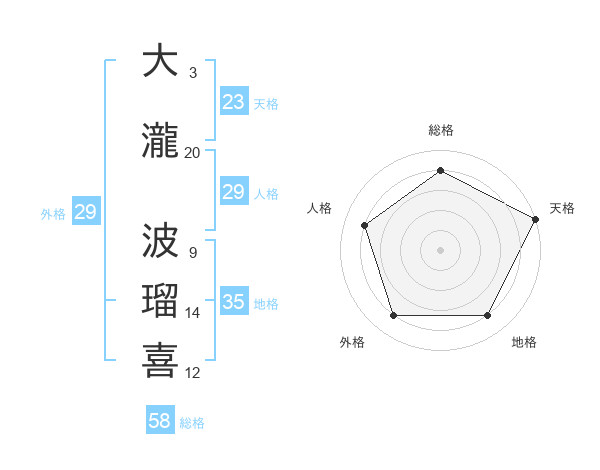 大瀧 波瑠喜さんの総格は58画の4点!