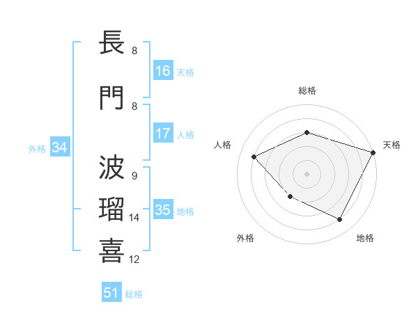 長門 波瑠喜さんを姓名の画数から五運を鑑定